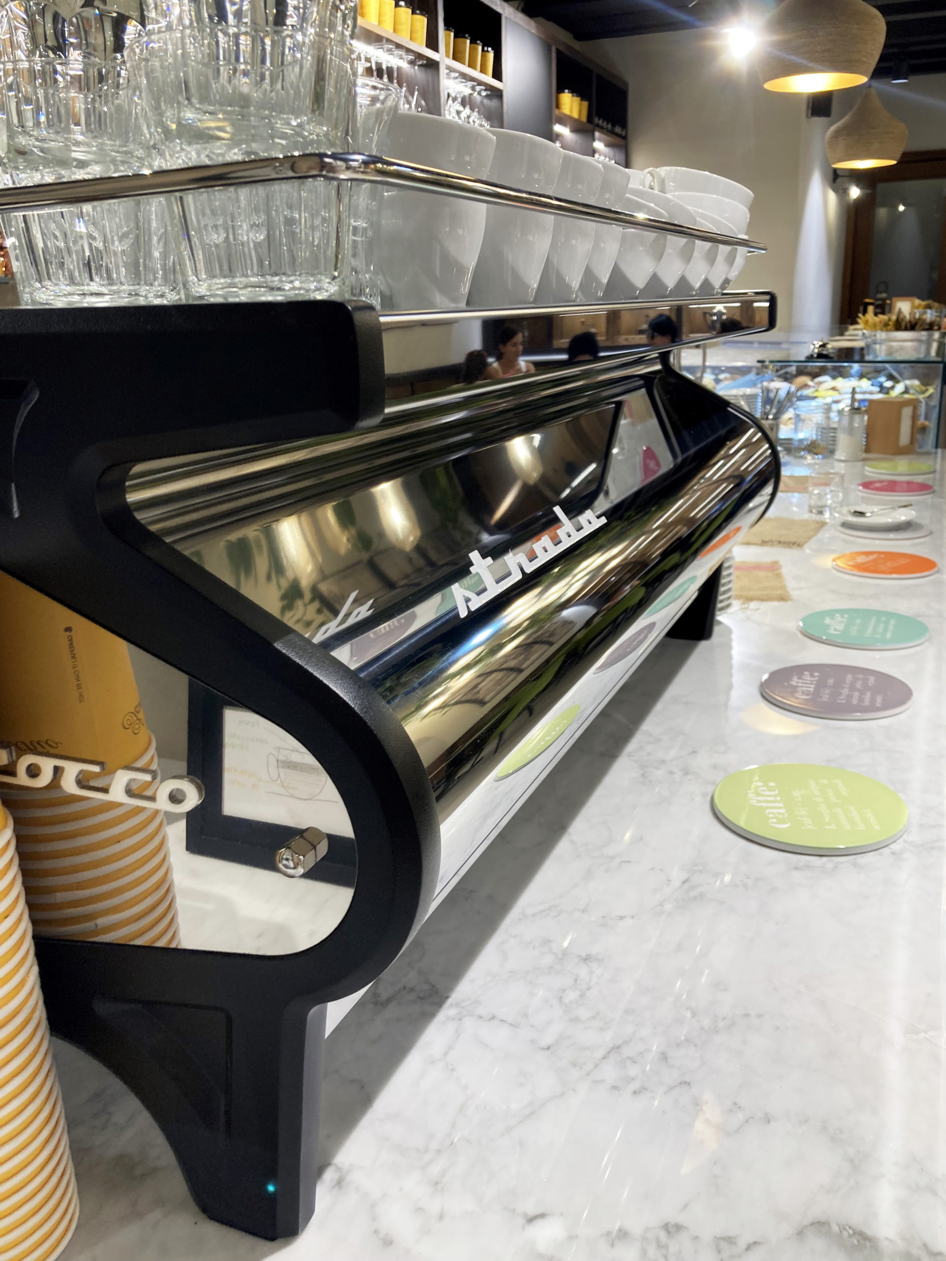 La scelta è ricaduta su La Marzocco perché nel panorama delle aziende produttrici di macchine, è sicuramente quella che ha sempre cercato di specializzarsi in qualità. Innova la tradizione, e per innovazione si intende qualcosa di sostanziale, non di semplicemente estetico.