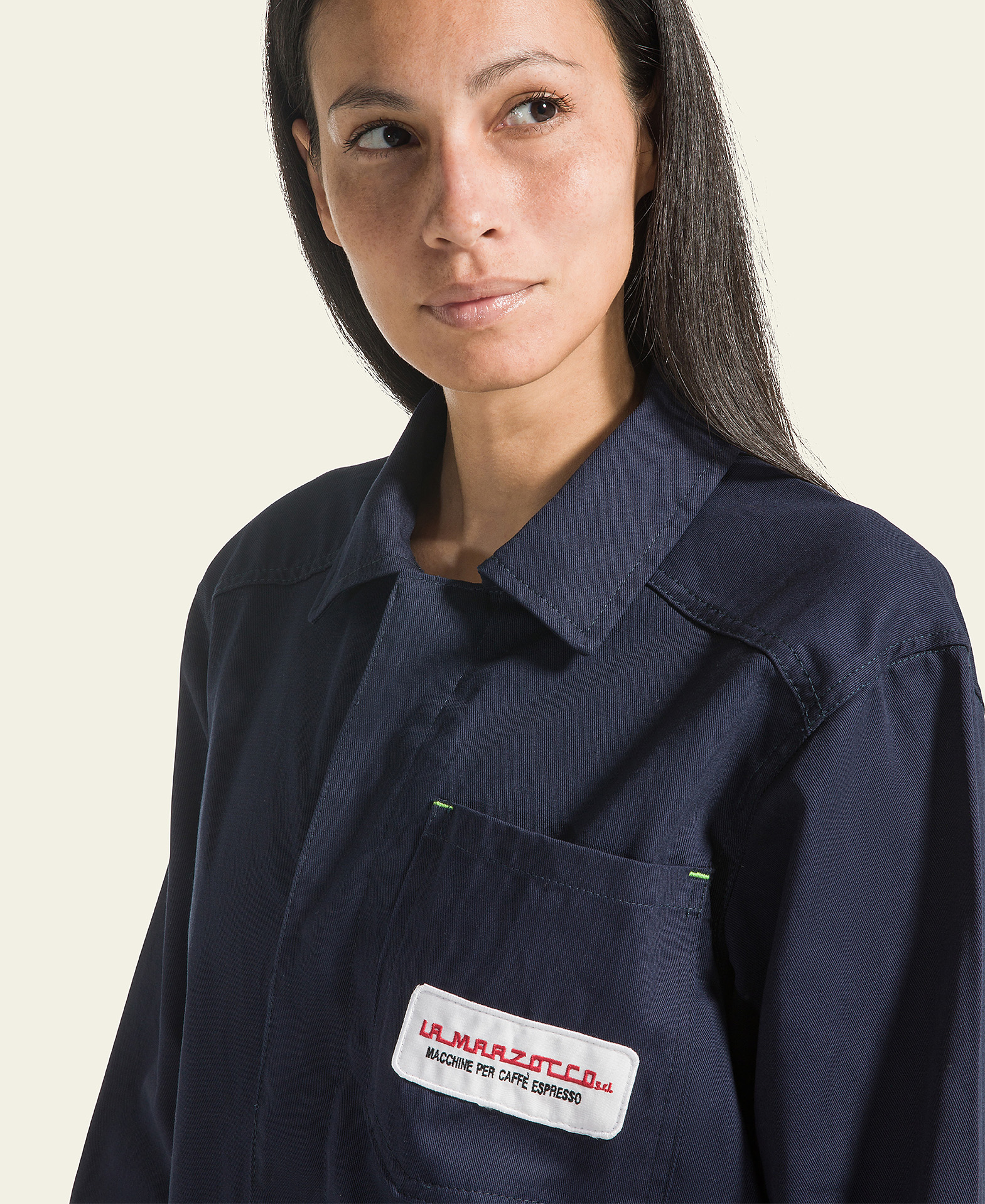 La vecchia uniforme da fabbrica, la stessa giacca di tela che gli operai indossavano durante il montaggio delle macchine La Marzocco negli anni ’90.
