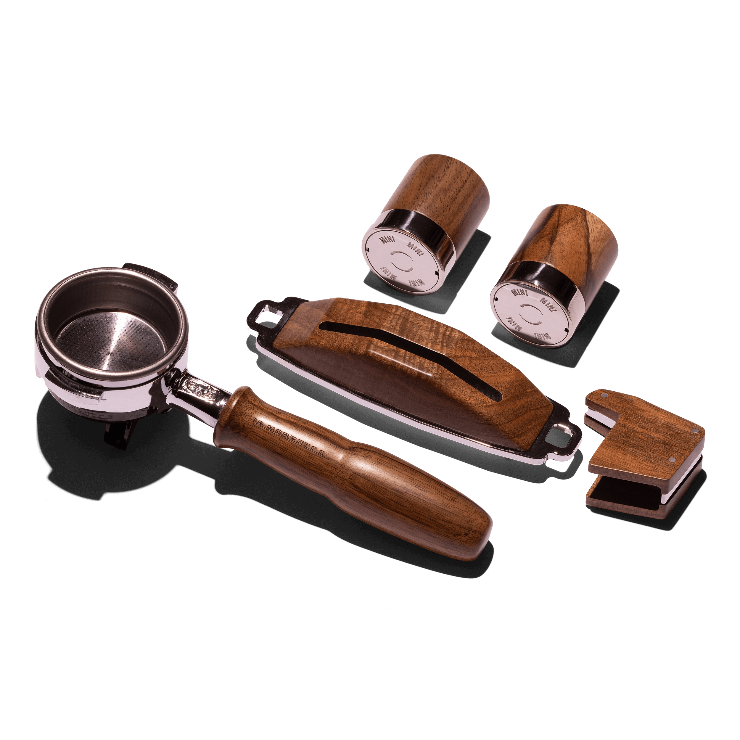 Il kit include manopole, groupcap, paddle e portafiltro, tutti pensati per avere un’estetica unica e raffinata al tuo setup.