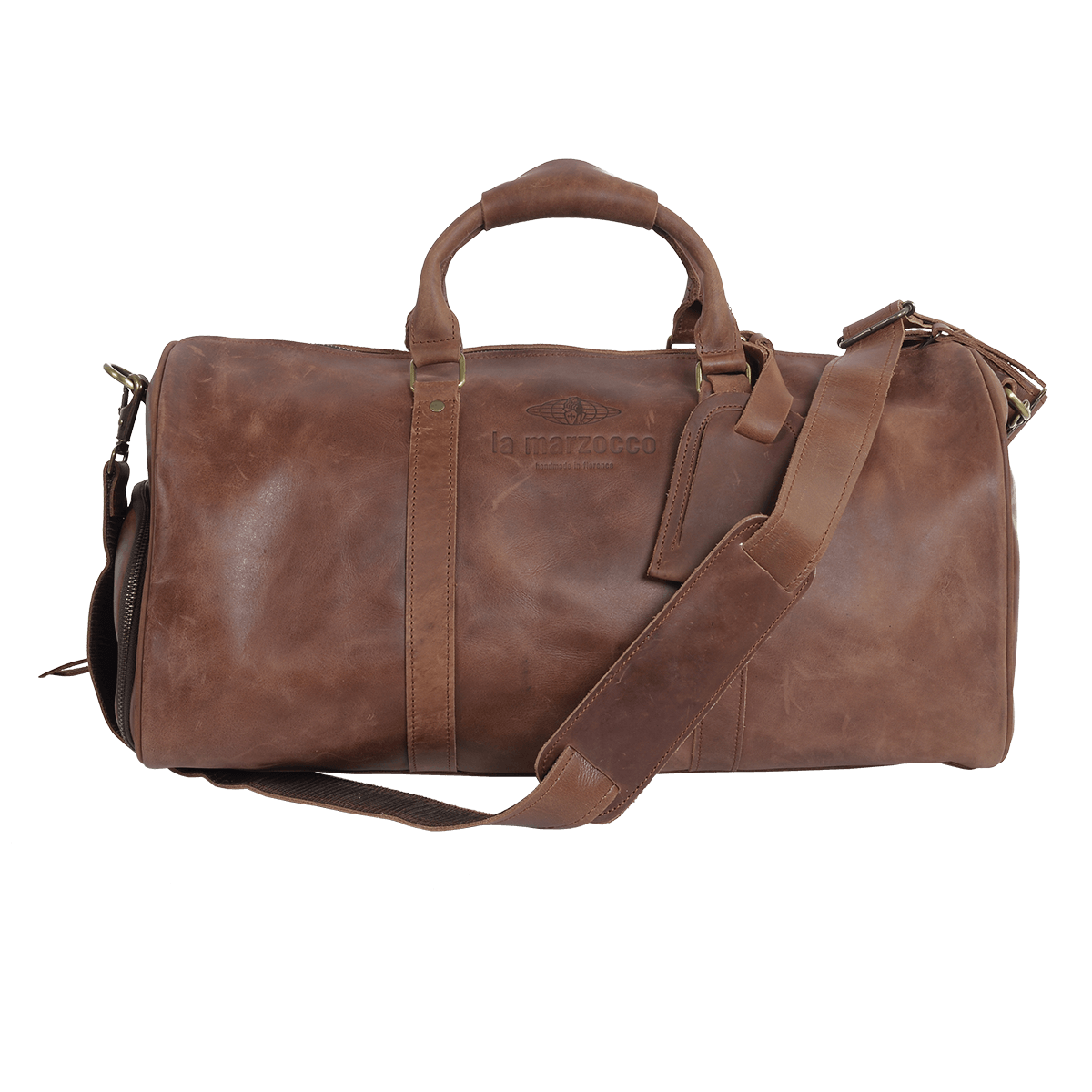 Perfect for your overnight trips away, this La Marzocco leather duffel bag is the stilish add to your travel essentials. It features an adjustable and removable shoulder strap and two inner pockets, perfect for travel in style and organization.
