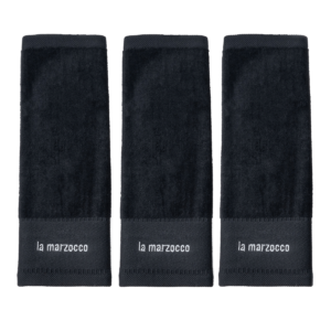 Un set di tre asciugamani in cotone, pensato per la pulizia dell’attrezzatura da espresso. Include: colore nero per portafiltro e tamper, colore bianco per le lance vapore e colore grigio per la vaschetta.